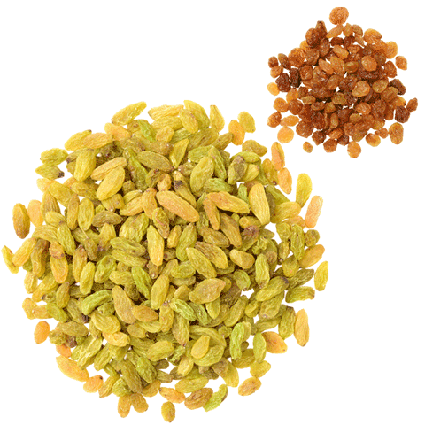 Smaller dried "Seedless" grapes, usually shriveled textured and sort of long. It generally contain slightly higher levels of certain nutrients due to their larger size and the presence of seeds.